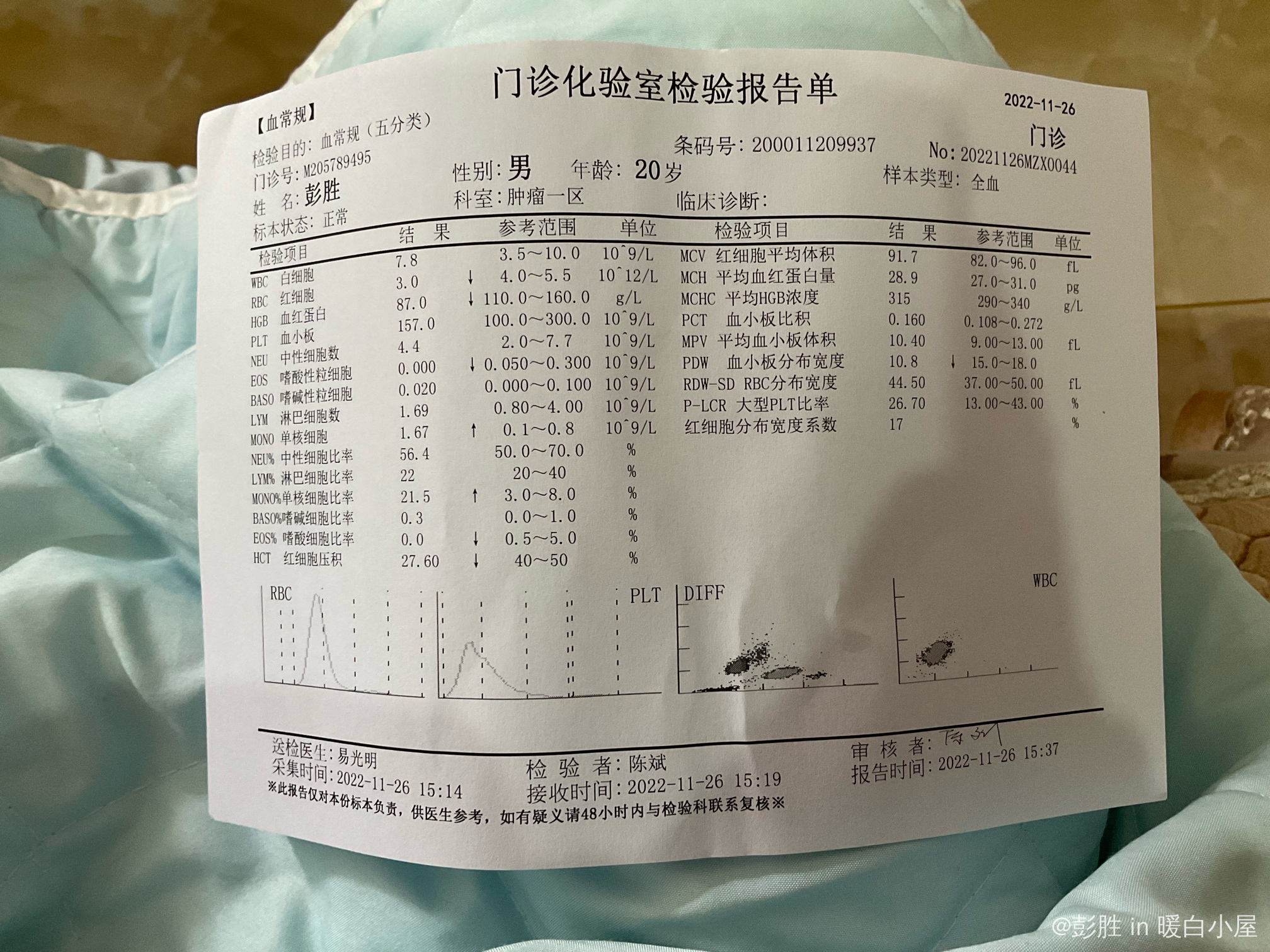 出院后的第一次血常规 求助帮我看看