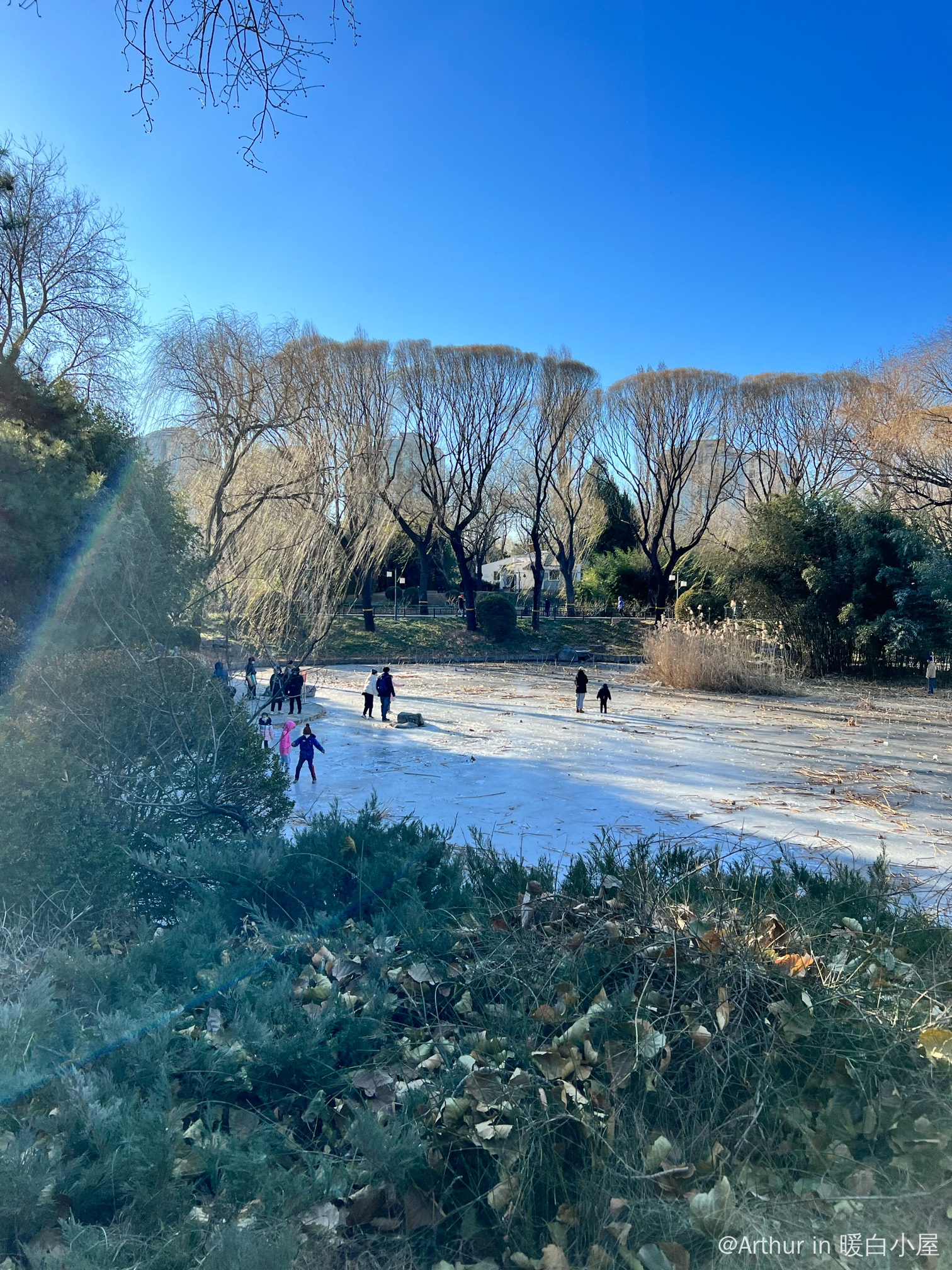 湖面都结冰了,天晴溜冰挺好玩,还是第一次在北方湖面溜冰。