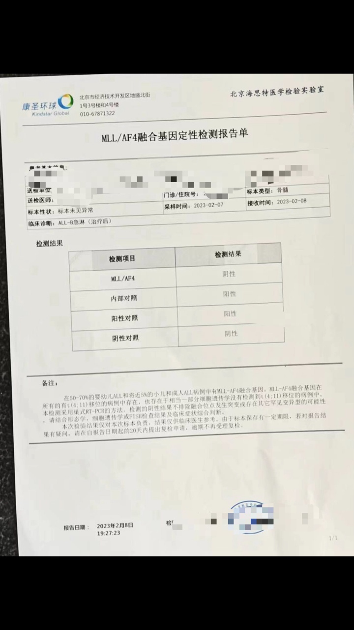 标题:MLL/AF4融合基因定性报告单