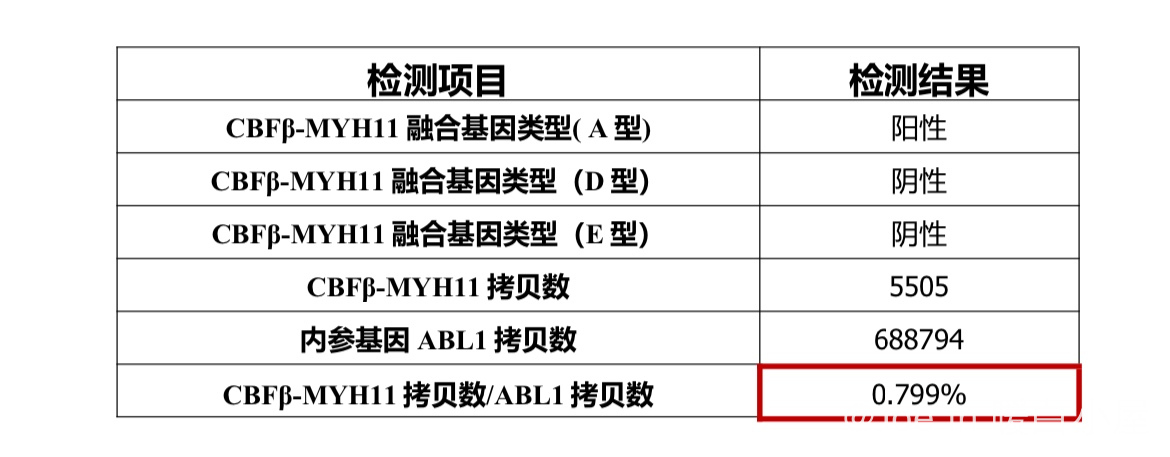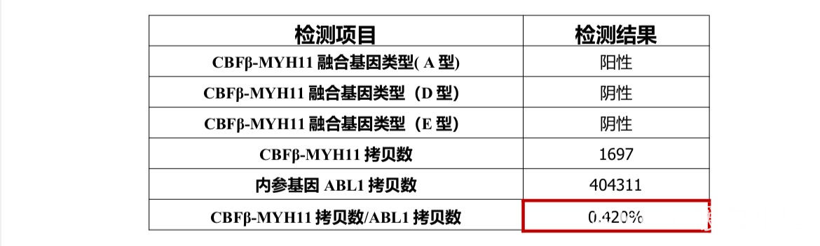 回输一个月后骨穿显示CBF贝塔基因 0.4%