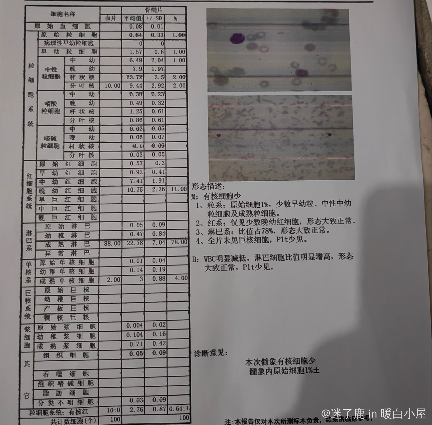 二疗已经30天了,细胞一点没涨,今天做了骨穿,刚出报告找不到大夫了。