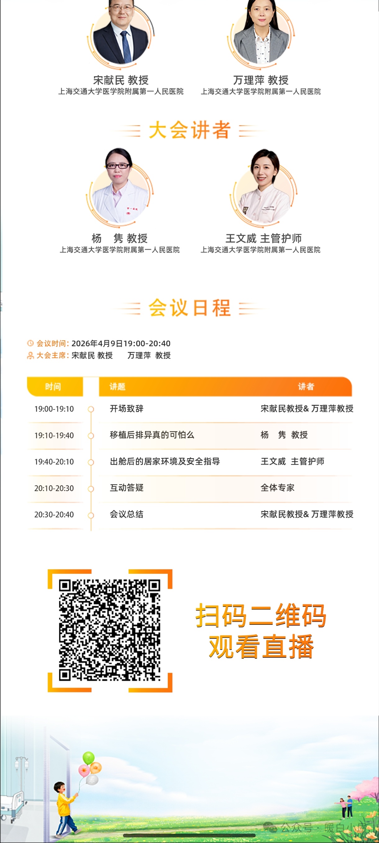 明天7点有上海市一的直播,下边有预约码。可以在直播间提交问题,时间允许宋教授会解答。另外有老年群,加微信群里的群主可以邀你,很多家属也在,能缓解下焦虑。