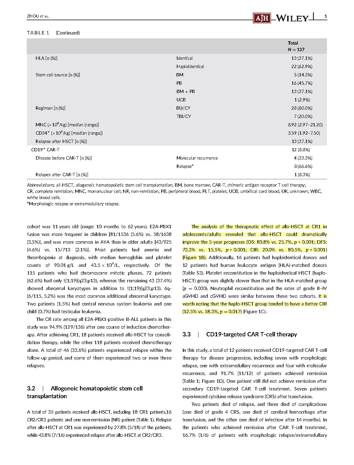 1.        青少年/成人(≥15岁)在CR1移植的情况下,移植后五年生存率80.8%,五年无病生存率73.3%,复发率20.0%;