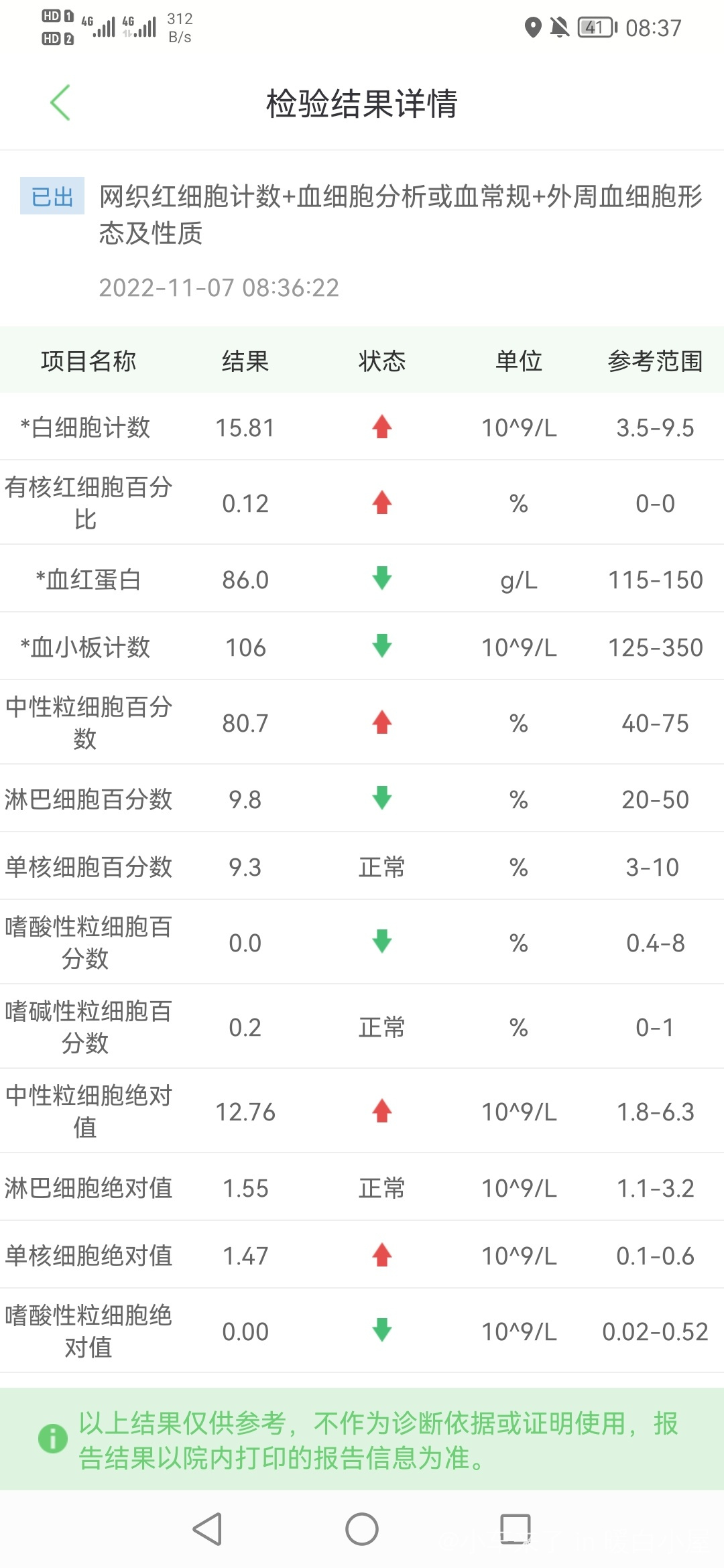 回输18天,激素停了,白细胞开始下降了,其他指标也在慢慢上涨,前几天发烧也退下来了,现在就等着疫情过去准备出仓了
