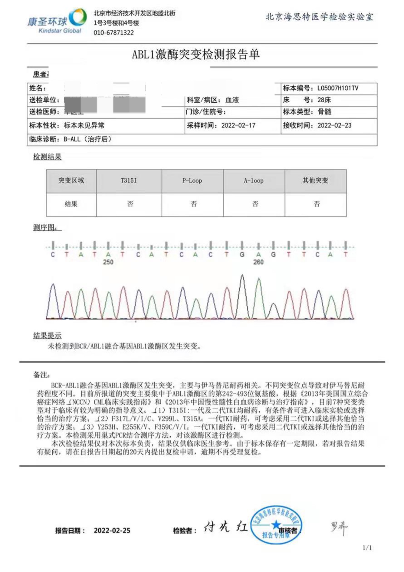 机智的胡老师 发表于 2022-03-22 19:36 2月17号查了t315i p-loop a-loop 和其他突变都是否 发帖的时候送检了3月17号的腰穿标本 还是查的这个,结果还没出来