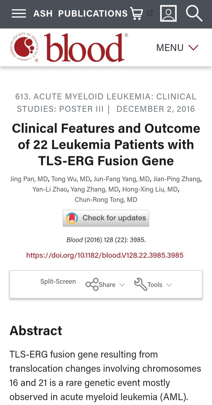 干饭王 发表于 2022-03-27 08:54 罕见融合基因,对急淋影响不大,但对AML是非常差的因素(儿童差,成人更差)因为罕见,所以一直没写入指南危险分层,只会暂定中危 没靶向药。当然随着医学进步,也有存活的,最好移植前是缓解状态基因清0(即使这样两年复发率也在50%以上)移植后若有条件可以输点高大上的东西…… 现实很残酷……
