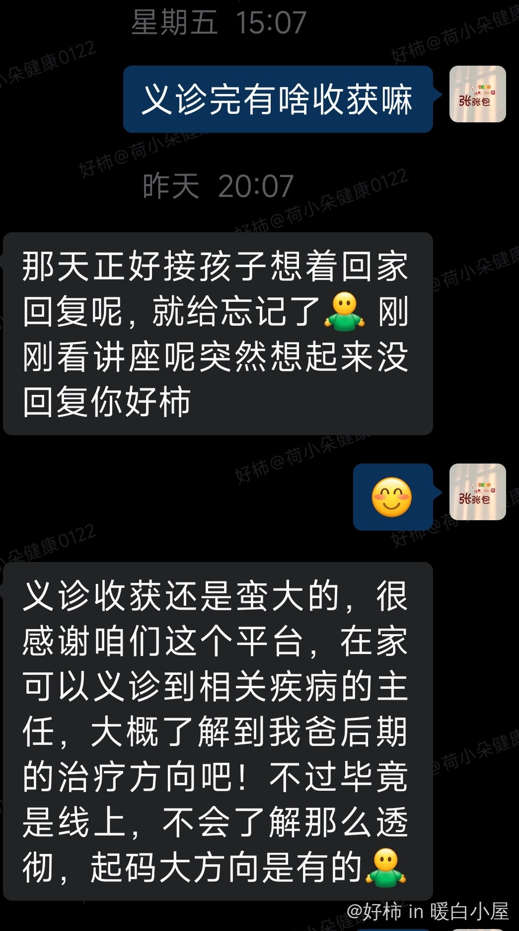 图二是家属帮父亲义诊;