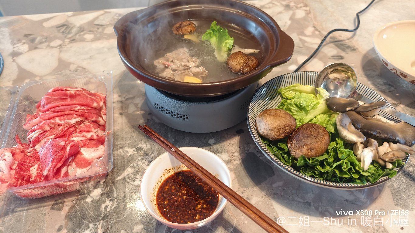 午餐:涮牛肉,香菇,生菜,香菇