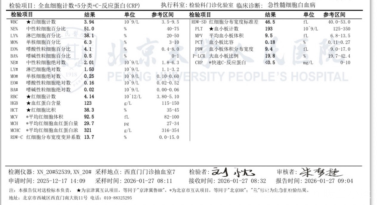 把检查报告贴一下,白细胞9月大查时也才2.8,这次虽然不高,终于正常了,血细胞恢复需要时间,在这期间做好防护,预防感染,剩下的交给时间,不要着急,慢慢来,我9月之前的白细胞有时才两点几,只要中性粒不低于1,也就不要太担心了,养养,慢慢就会好的,在家修养的日子,还是要多运动,散散步什么的,最好别一天到晚躺床上,6月回家后,基本每天8000到1万步,我看暖白恢复的好的,都保持了一定运动量,人生无常,暖白给了我一束光,才知道,原件生这病,还有人生,人生仍然可以很精彩,我把努力放在每一天里,把运动也当成治疗的一部分,比起吃药,运动也是可以是一种最好的良药!