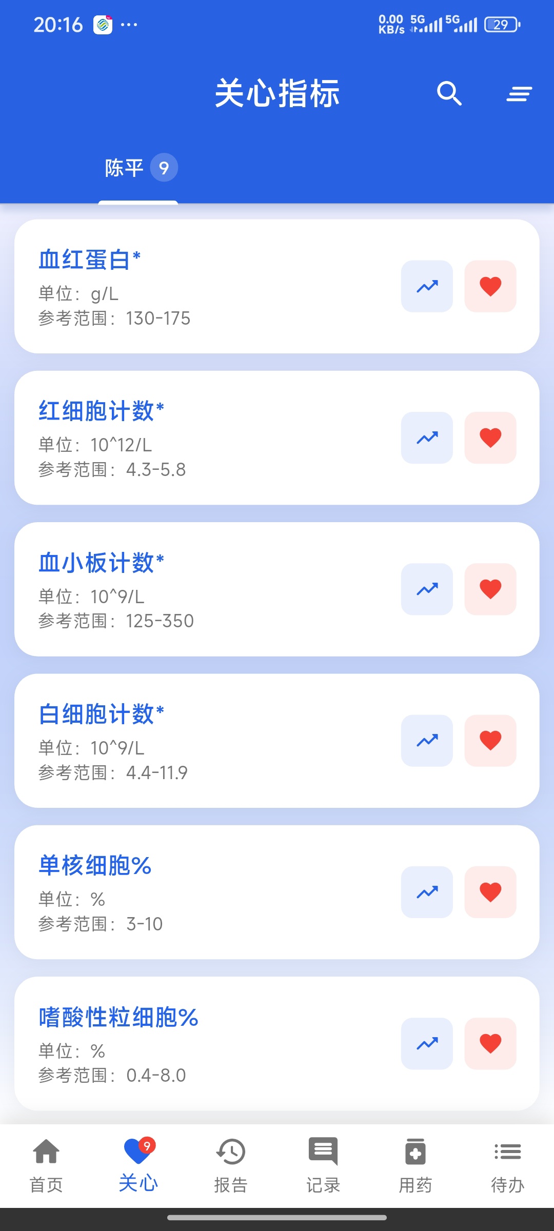 12.同一指标多次检查自动聚合对比(如血常规、肝功能等)。
