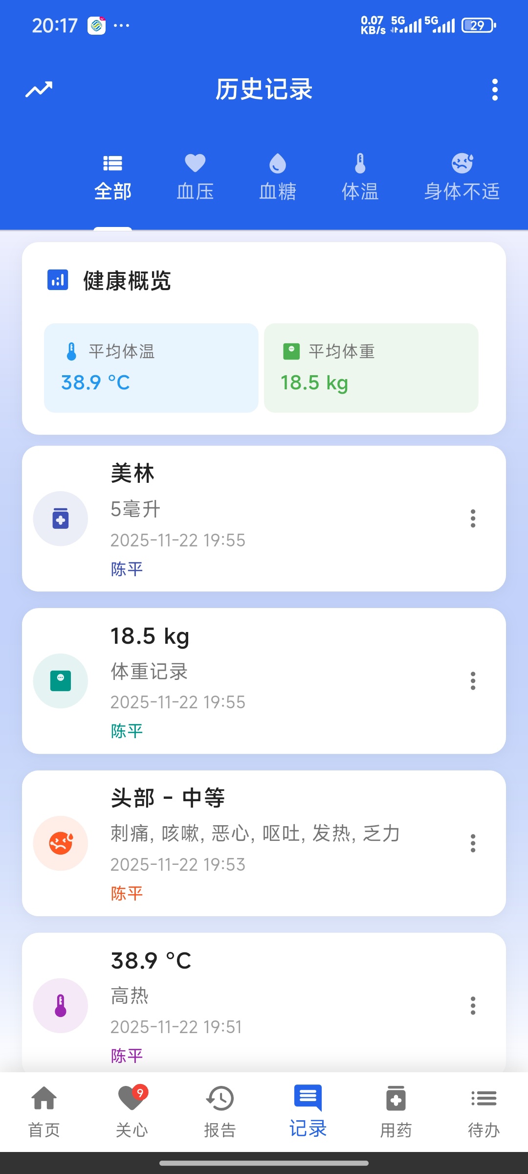 15.血压,血糖,血脂,心率,体温,体重,身体不适,喂药,饮食,大小便,喂奶,备忘录等各种记录&图表趋势可视化。