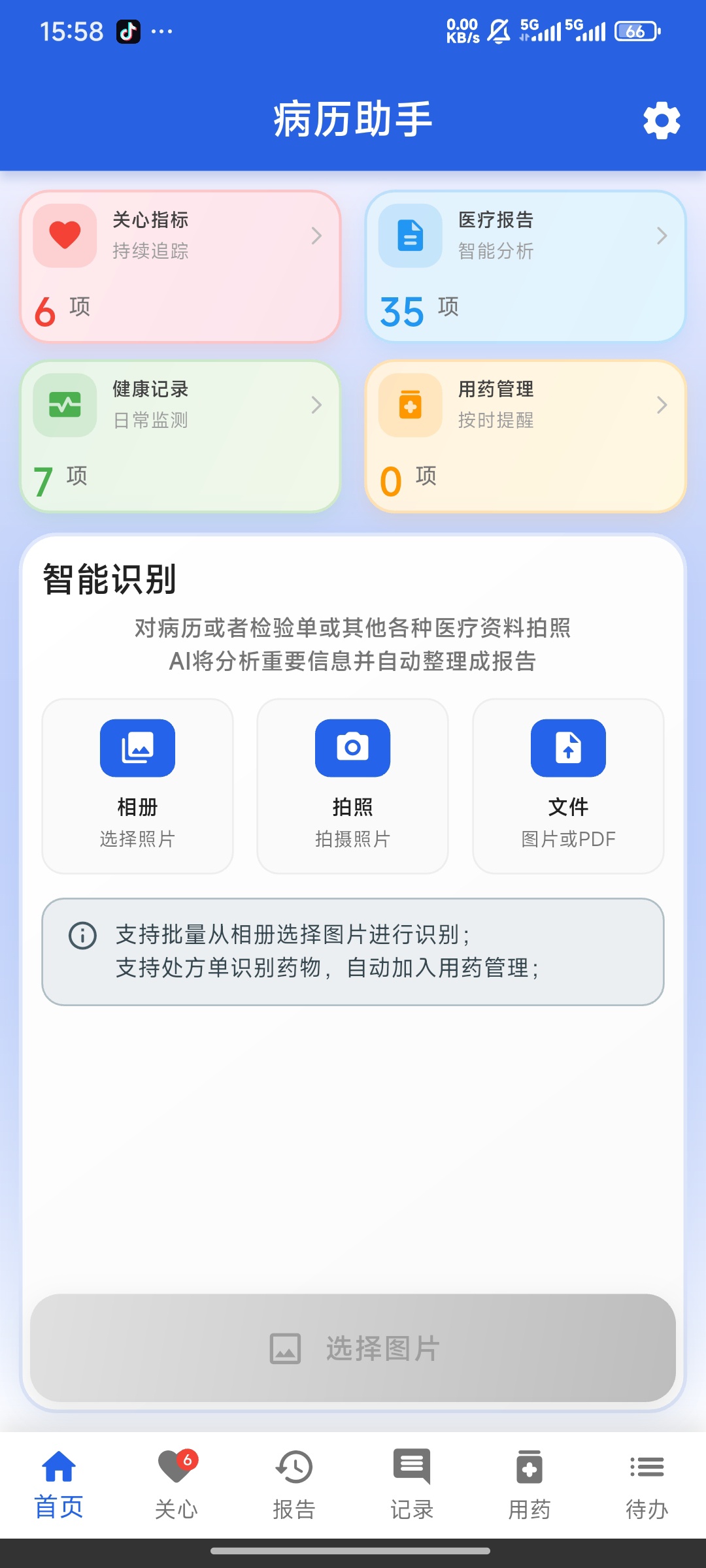 2.智能用药吃药提醒管理(支持处方单和药盒识别并自动加入药品管理)及闹钟闹铃通知多重提醒。