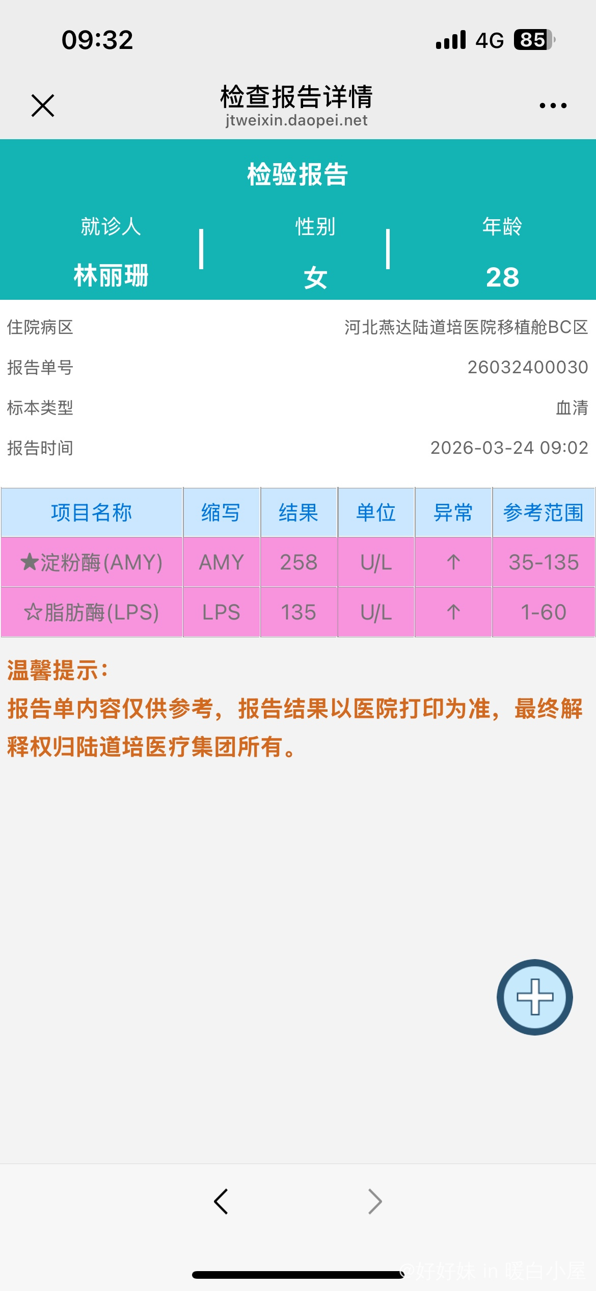 二移+7 胰腺炎 吐了一晚上 插了胃管 太难受了 保佑快快 ...