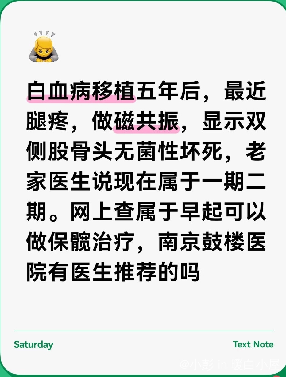 股骨头坏死,南京鼓楼医生推荐求助帖